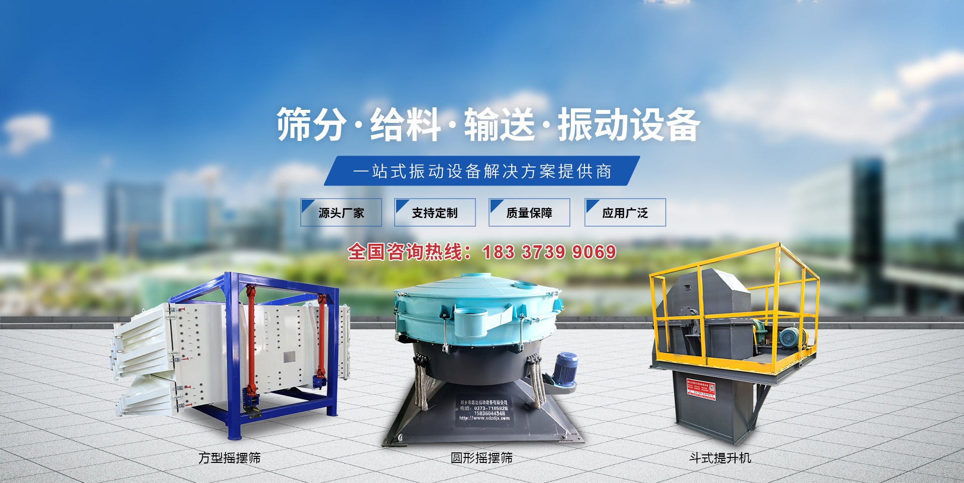 新鄉市鑫達振動設備有限公司是研制、生產、銷售篩分設備、振動設備、提升設備的廠家,以研制生產振動電機,篩分設備而著稱于國內外市場。我公司與中國礦業大學北京理工大學、機電部設計院等高校和科研設計單位緊密配合,依托企業雄厚的經濟基礎完整的技術資料、精良的加工設備以及一批高素質的技術職業隊伍,導入ISO9001:2000國際質量管理體系,以科學管理模式、優良售后服務、不斷完善產品質量。  公司主要產品有:振動篩、超聲波振動篩、直線振動篩、礦用重型篩、旋振篩、脫水篩、直排篩、系列振動電機、振動給料機、給料斗、振動振動防閉篩、振動磨機、斗式提升機、垂直(螺旋)提升機、皮帶輸送機等。  公司一貫堅持:“價格合理、服務完善”的宗旨,憑借著高質量高水平的產品,良好的信譽、完善的服務、竭誠與您雙贏合作、共同發展、共創輝煌!